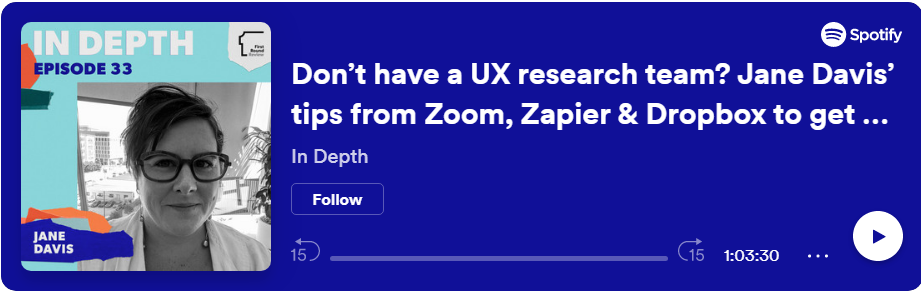 Jane Davis shares the playbooks she’s honed leading user research teams at Zoom, Zapier and Dropbox, tackling everything from specific questions to ask in customer interviews, to frameworks for getting feedback as you launch and prototype products in episode 33 of the In Depth podcast with host Brett Berson. Spotify | Apple Podcasts