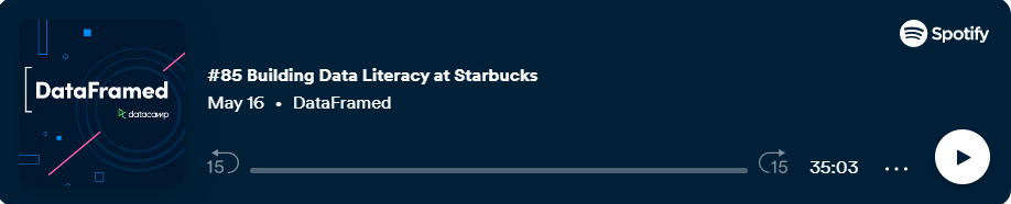 Megan Brown, Director of Data Literacy and Knowledge Management at Starbucks, discusses what they have done to forge data culture and data literacy at Starbucks. Spotify Apple podcast 05/16