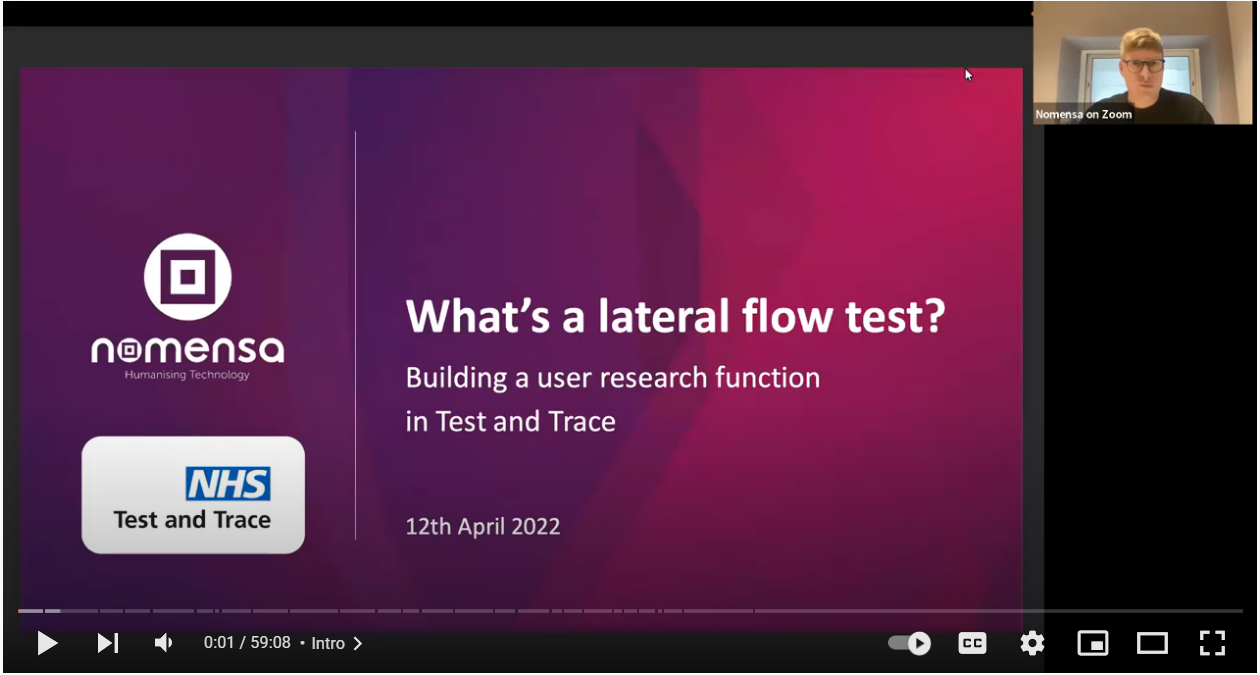 Since February 2021, Nomensa have partnered with NHS Test and Trace to provide user research support and capability across multiple work streams. In this talk, Tom will cover his experiences building a user research function in a new team (The Single Digital Front Door team - Testing guidance on NHS UK). YouTube 04/13