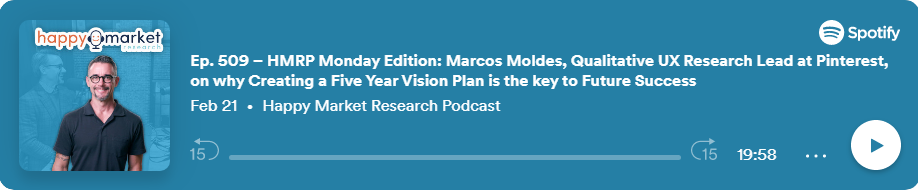 Marcos Moldes, UXR Lead at Pinterest on why creating a five year vision plan is the key to future success. Spotify 02/21