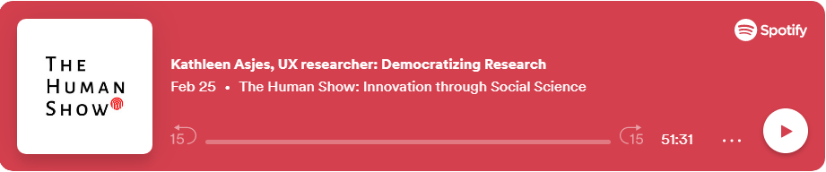 The ways to teach and empower teams to do research themselves. Kathleen questions the skills that a UX Researcher is often expected to have and shares her insights into what she believes makes a good researcher. Spotify 02/25